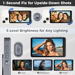 Real-Time Wireless Screen Mirroring & Back Camera Selfie: Right away mirror your phone screen to this monitor by means of wireless connection—enjoy real-time previews with zero delay. Capture crystal-clear selfies and videos the use of your phone’s high-quality rear camera, Very best for vlogging, TikTok live streams, or filming tutorials. Works seamlessly with both iPhone and Android systems
