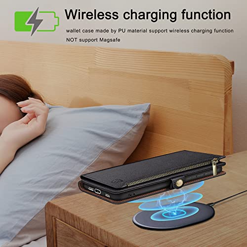 【Large Capacity】This iPhone X/XS 5.8″ leather wallet case with 9 card holder,1 zipper pocket and 1 cash slots can store your credit cards,ID card, cash and some notes,etc.A detachable wrist strap provides much convenience for carrying it when you go outside.