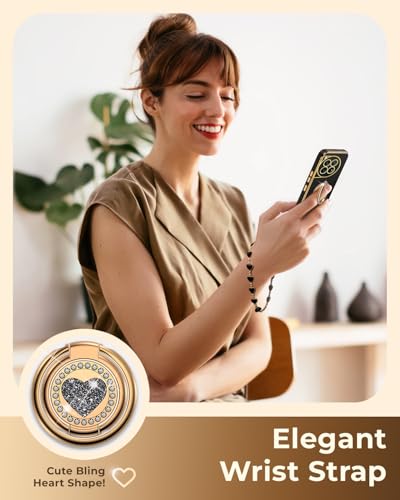 💖【Cute and Timeless Design】With a rose gold electroplated edge, a heart shape engraved ring kickstand and a mini-hearts wrist strap chain, this case adds elegance and charm to your phone. It’s a perfect representation of your taste for luxury and style. Makes an ideal gift for your wife, mother, daughter, girl friend, and friends on occasions like Anniversary Day, Mother’s Day, birthdays, Christmas, Valentine’s Day, and more.