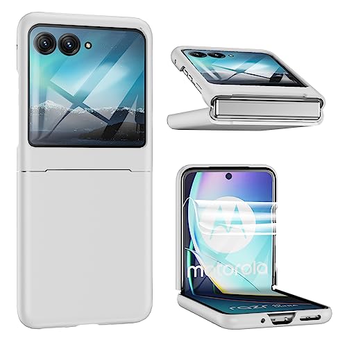 Yuanjing for Moto Razr 40 Ultra case (Screen Protector Included) Thin Hard PC Phone case for Moto Razr 40+ (White)