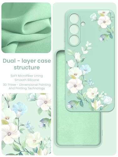 Yucenx for Samsung Galaxy S24 FE 5G Case with 2X Screen Protector, Girls Women Florals Liquid Silicone Phone Case, Shockproof Anti-Scratch Soft Protection Case for Galaxy S24 FE 5G