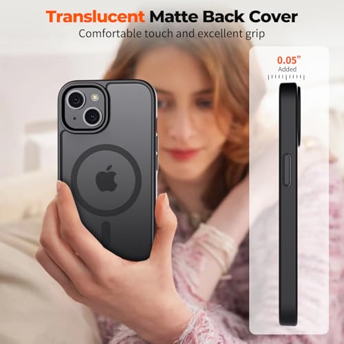 zapica Magnetic for iPhone 13 Case & iPhone 14 Case, [Compatible with MagSafe] [Military Grade Drop Protection] Translucent Matte Shockproof Anti-Scratch Phone Cover, Black