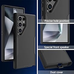 【Easy to Install and Use】: S24 Ultra Case is very easy to install, no need to disassemble the case to install the phone, specially designed front speaker for better listening experience, and the frosted texture on the surface of the case provides a more comfortable feel and is scratch and fingerprint resistant.